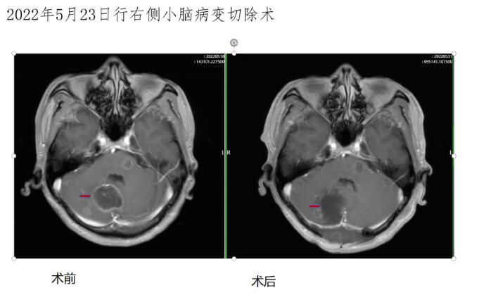 2022年6月2日行***次伽玛刀治疗(幕上),共治疗10个脑转移瘤,2022年6月14日行第二次伽玛刀治疗(幕下),共治疗12个脑转移瘤。